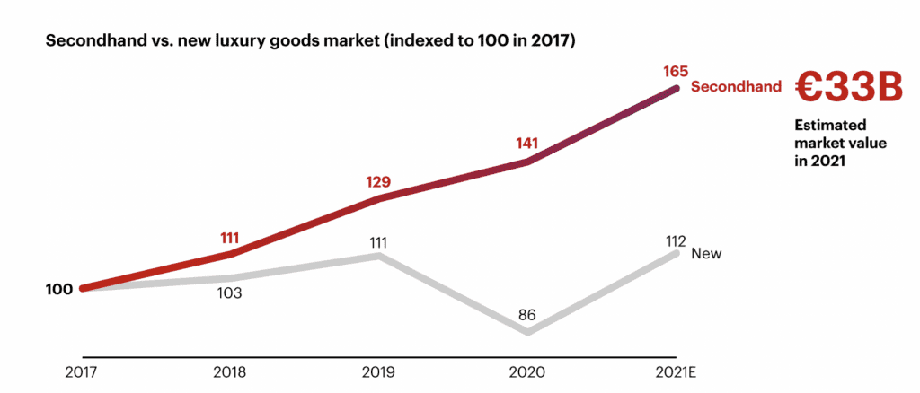 Currently worth more than €30 billion, which is a rise of 65 percent from 2017, Bain projects that the preowned luxury market “can keep surging,” and continue to outpace the market for new products if brands address these issues.