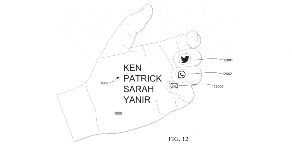 These have since been followed by a dozen patent family filings (i.e., a collection of patent applications covering the same or similar technical content) lodged in March 2022 for things ranging from “a laser projection on [a] fingernail” (US20230280867A1) and “automatic camera exposures for use with wearable multimedia devices” (US20230283886A1) to systems for “composing electronic messages based on speech input” and editing them (US20230282214A1) and “displaying images using wearable multimedia devices” (US20230283885A1).