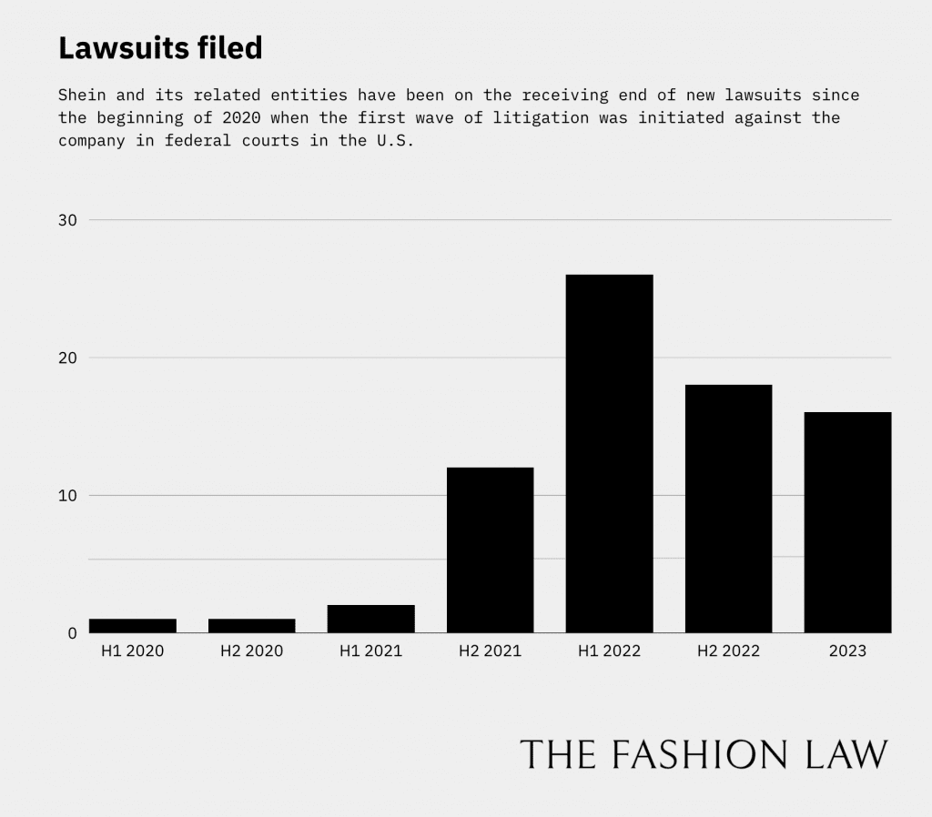 > Shein has been on the receiving end of new lawsuits since the beginning of 2020 when the first wave of litigation was initiated against the company in federal courts in the U.S. By our count, Shein is currently facing upwards of 30 ongoing cases.