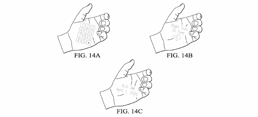 These have since been followed by a dozen patent family filings (i.e., a collection of patent applications covering the same or similar technical content) lodged in March 2022 for things ranging from “a laser projection on [a] fingernail” (US20230280867A1) and “automatic camera exposures for use with wearable multimedia devices” (US20230283886A1) to systems for “composing electronic messages based on speech input” and editing them (US20230282214A1) and “displaying images using wearable multimedia devices” (US20230283885A1).